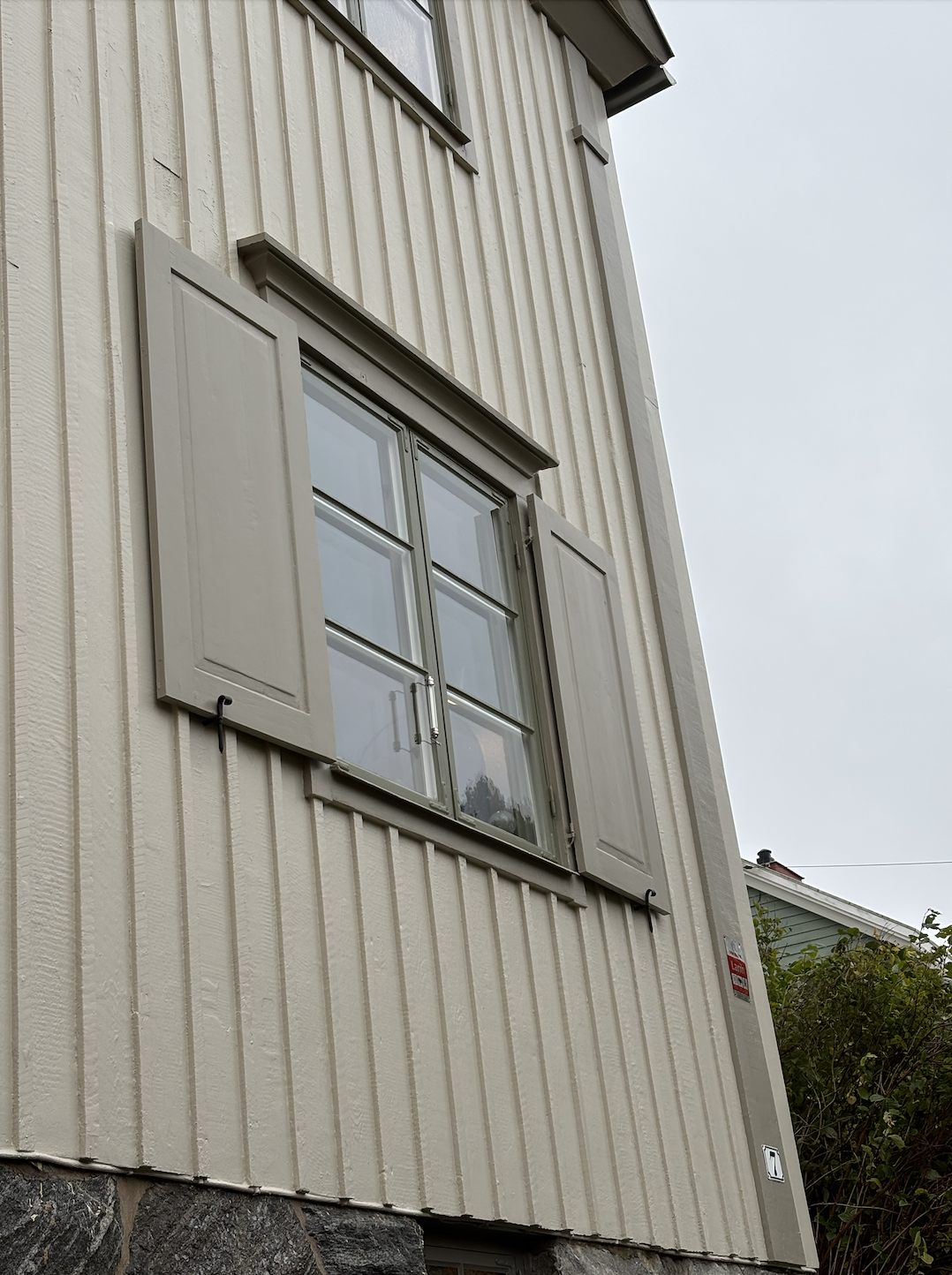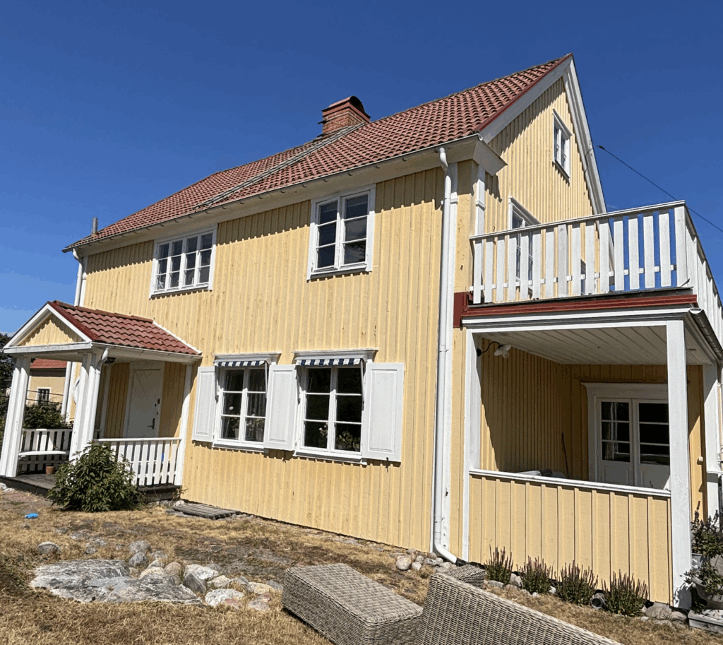 Utöver takarbetena målades fasad och samtliga fönster om med traditionella material och metoder anpassade för äldre hus. Färgsättningen valdes för att lyfta arkitekturen och framhäva byggnadens tidstypiska detaljer. Projektet omfattade även ny pergola, altan samt markarbeten som knöt samman hus och trädgård till en fungerande helhet.
